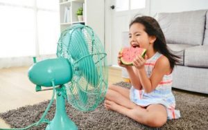 A falta de aire acondicionado, haz uso de los ventiladores. Si quieres crear una especie de brisa fresquita, hay un truco que es muy ingenioso: llena un cuenco con hielo y sitúalo en ángulo frente al ventilador. De esta forma, al encender el aparato notarás como el aire que circula es frio y fresquito